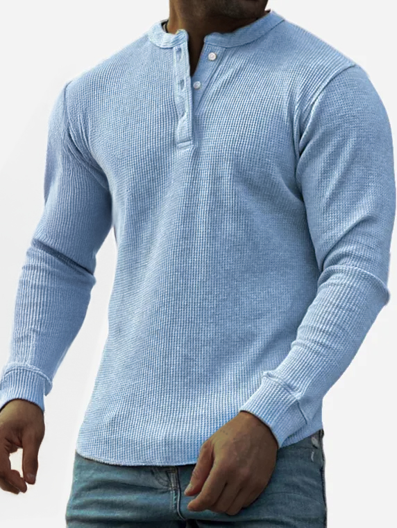 Herren-Langarm-Sweatshirt mit Waffelstrickkragen und Henley-Muster