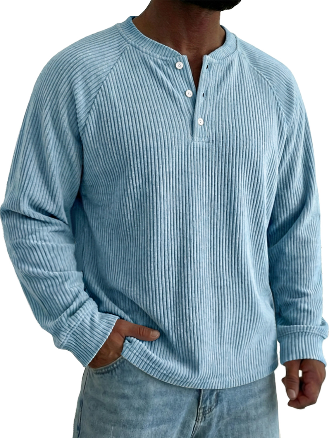 Herren Raglan-Cord-Freizeithemd einfarbig langärmelig Henley-Shirt