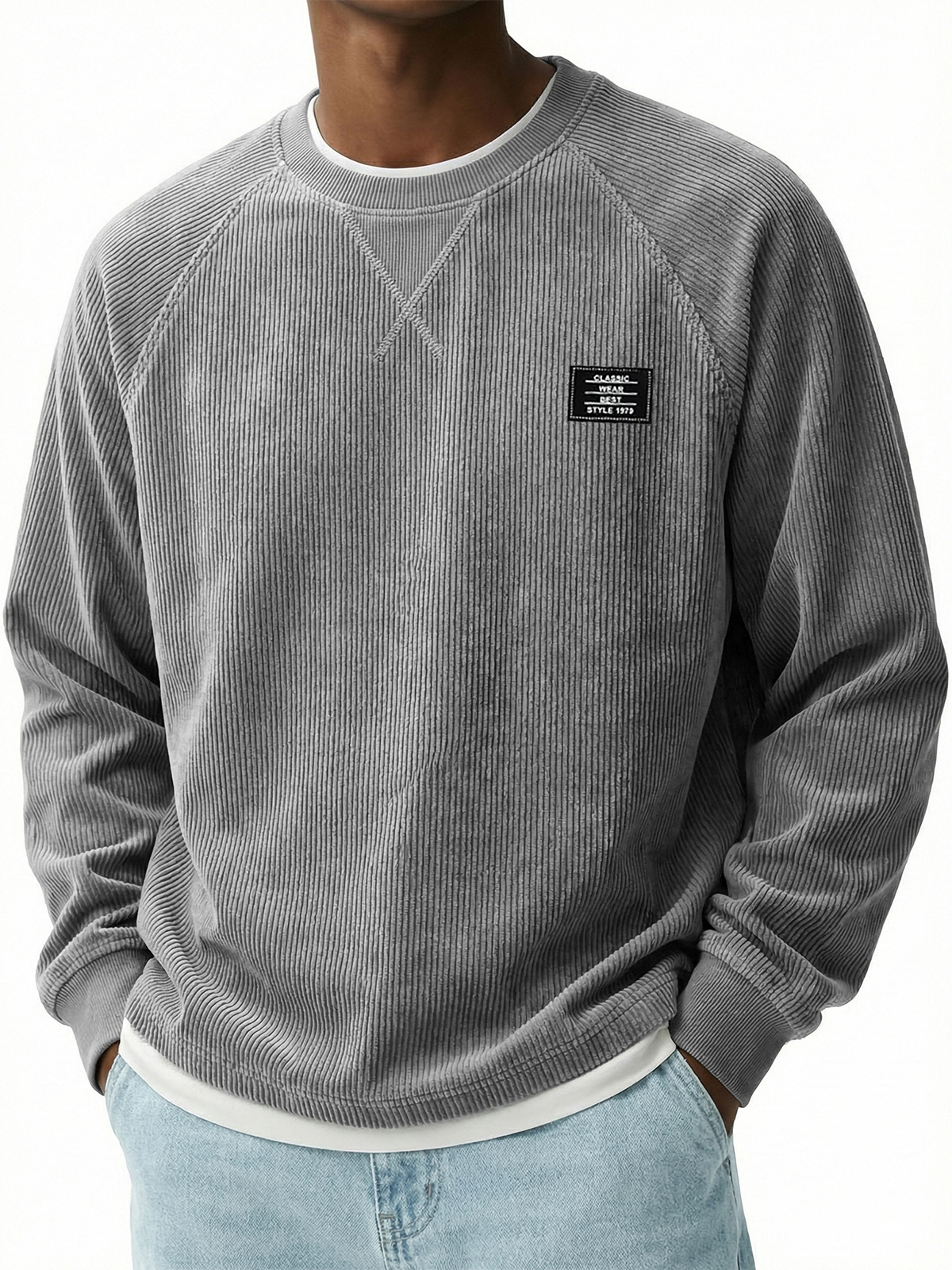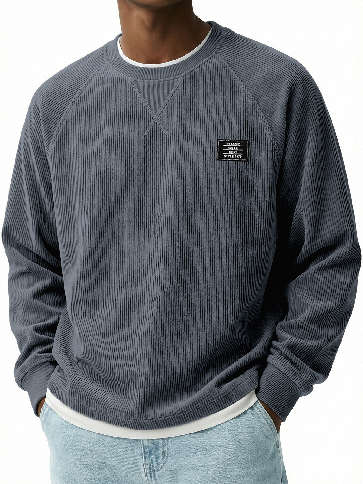 Vintage-T-Shirt aus geripptem Cord lockere Passform lässiges Alltags-Oberteil für Herren