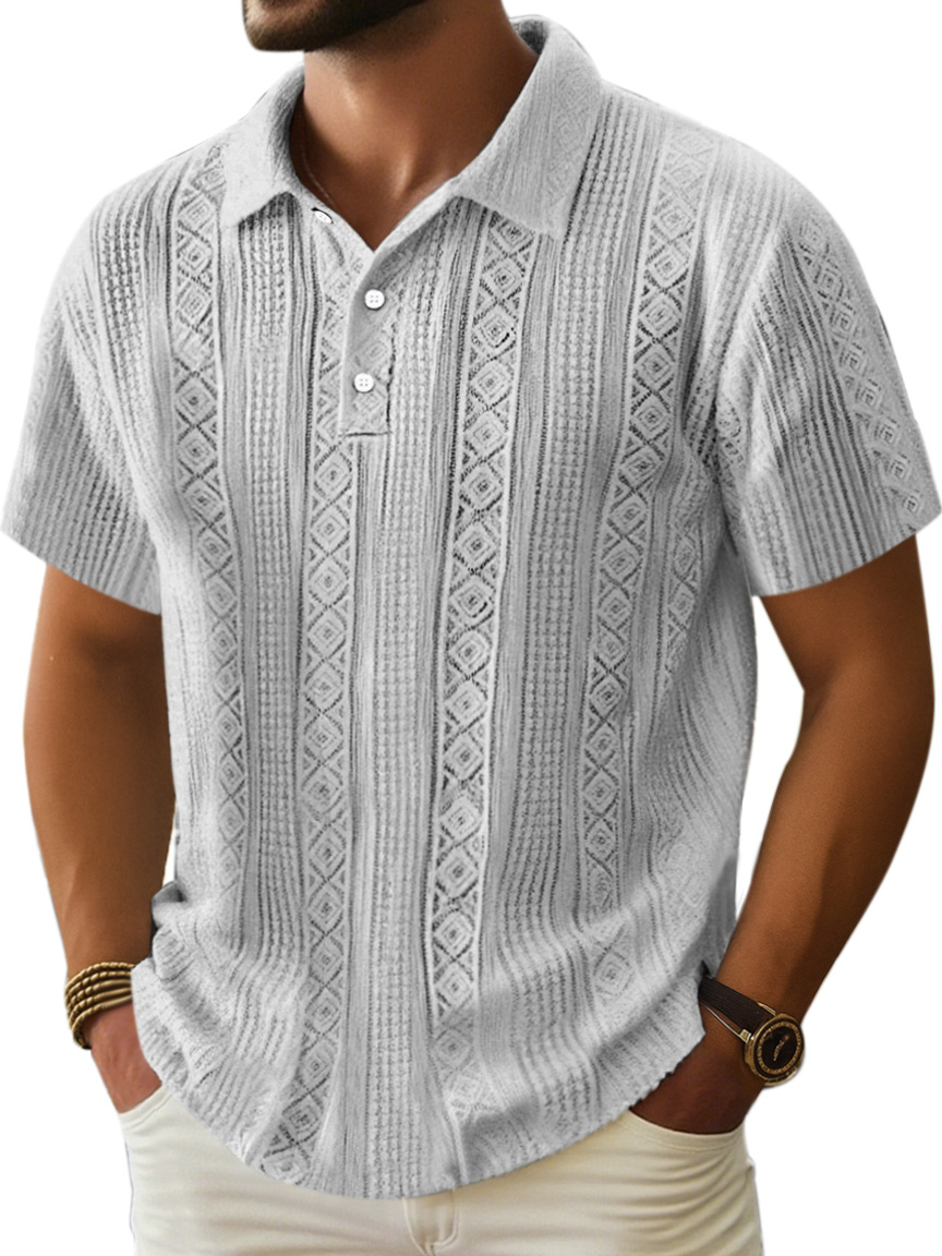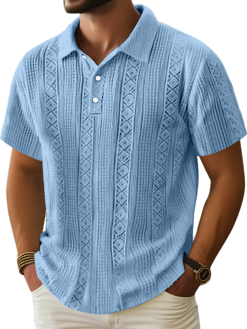 Lockeres und einfaches Poloshirt mit Waffelmuster und Stehkragen für Herren im Alltag