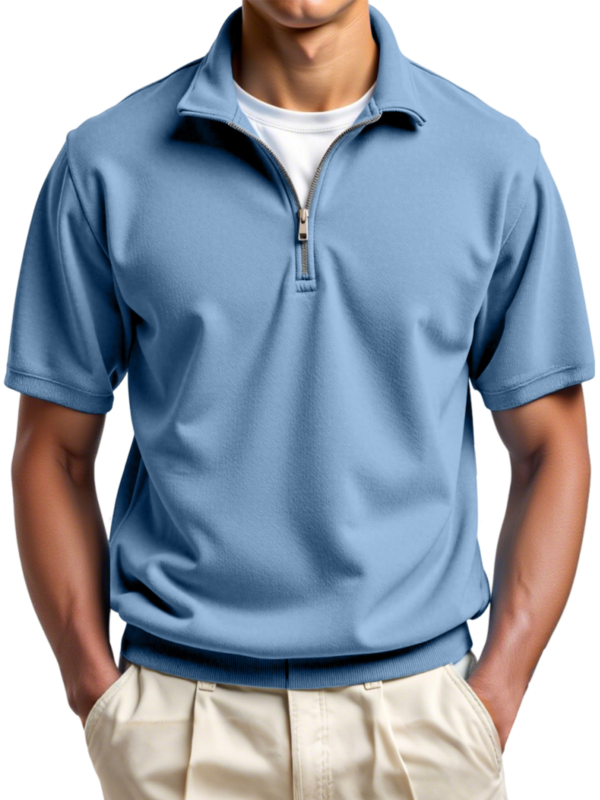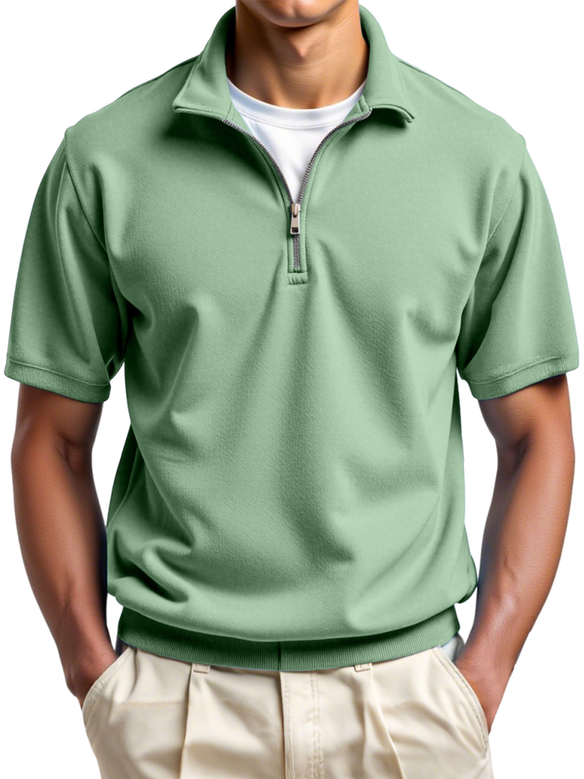 Einfaches, einfarbiges Poloshirt mit Reißverschluss für Herren