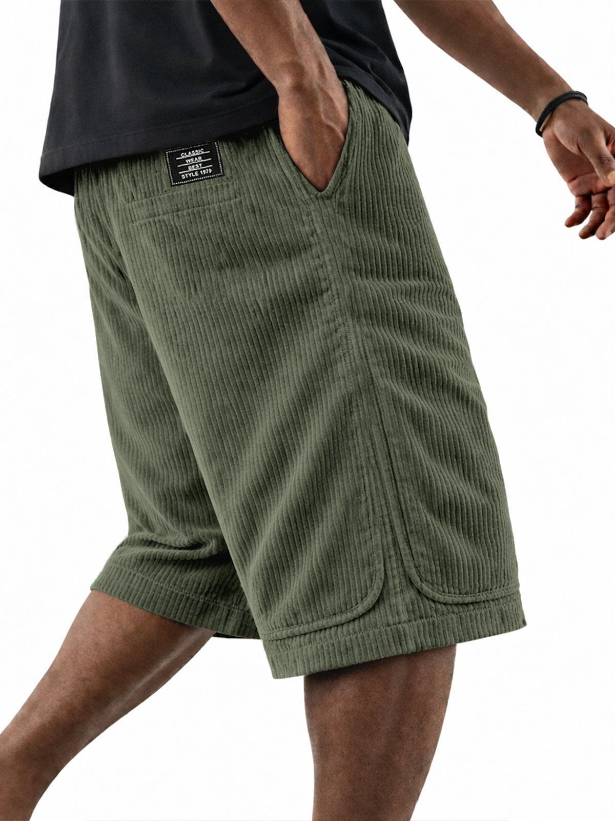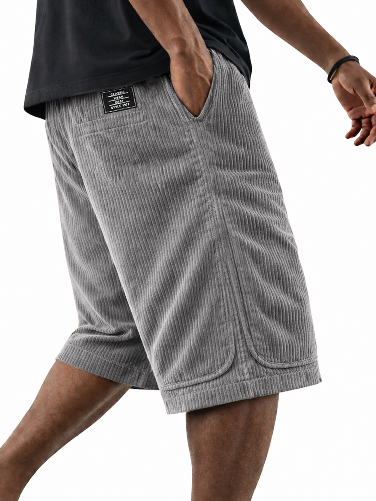 Stilvolle Herren-Shorts aus Cord im Vintage-Stil mit mehreren Taschen und einfachem, gesticktem Logo, lässig und locker