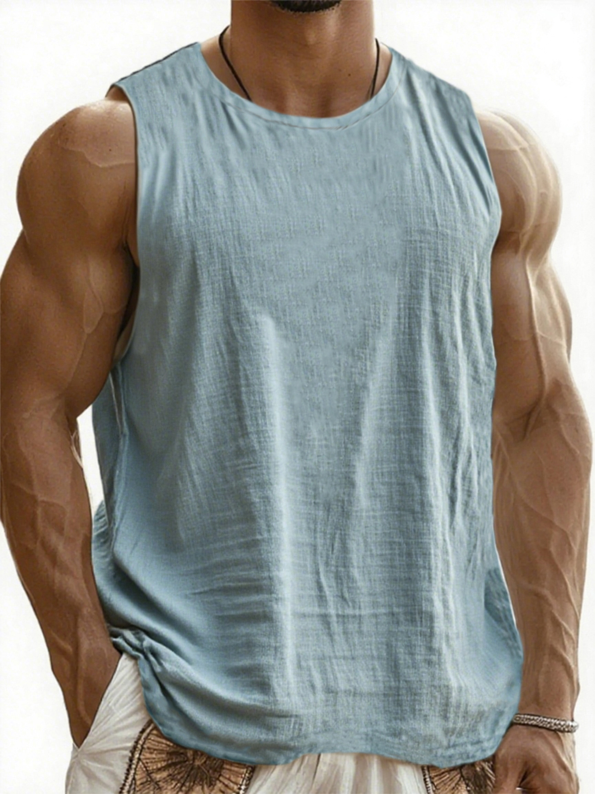 Atmungsaktives ärmelloses Henley-Hemd aus Leinen im Vintage-Stil für Herren