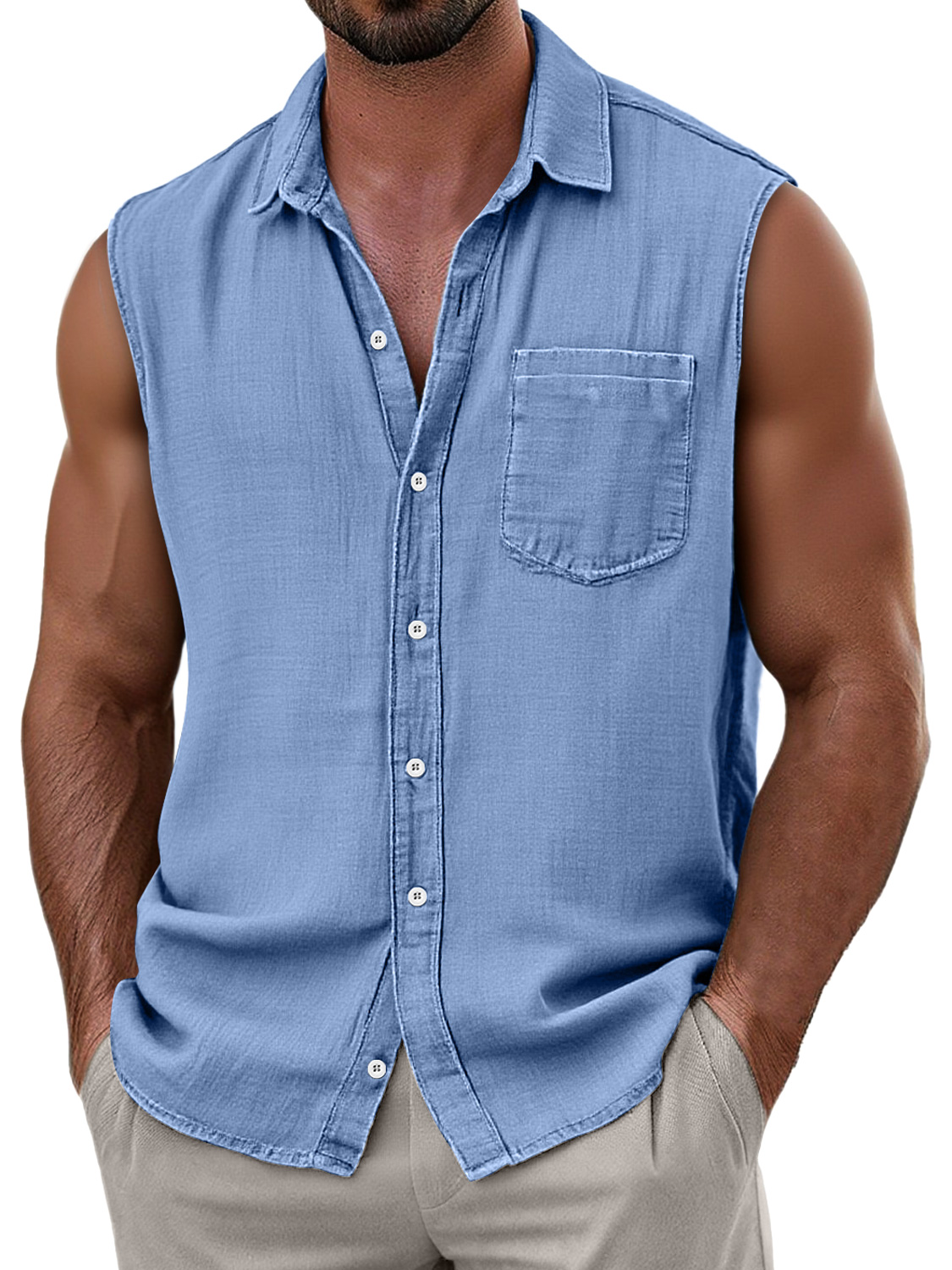 Herren Retro Einfarbig Lässig Bequem Ärmellos Revers Tasche Hemd