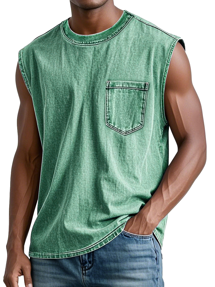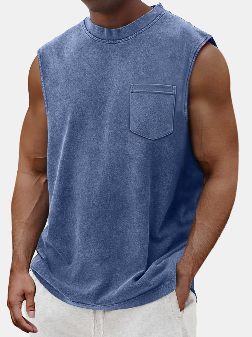 Herrenmode Retro Distressed Rundhals Tasche Ärmelloses T-Shirt