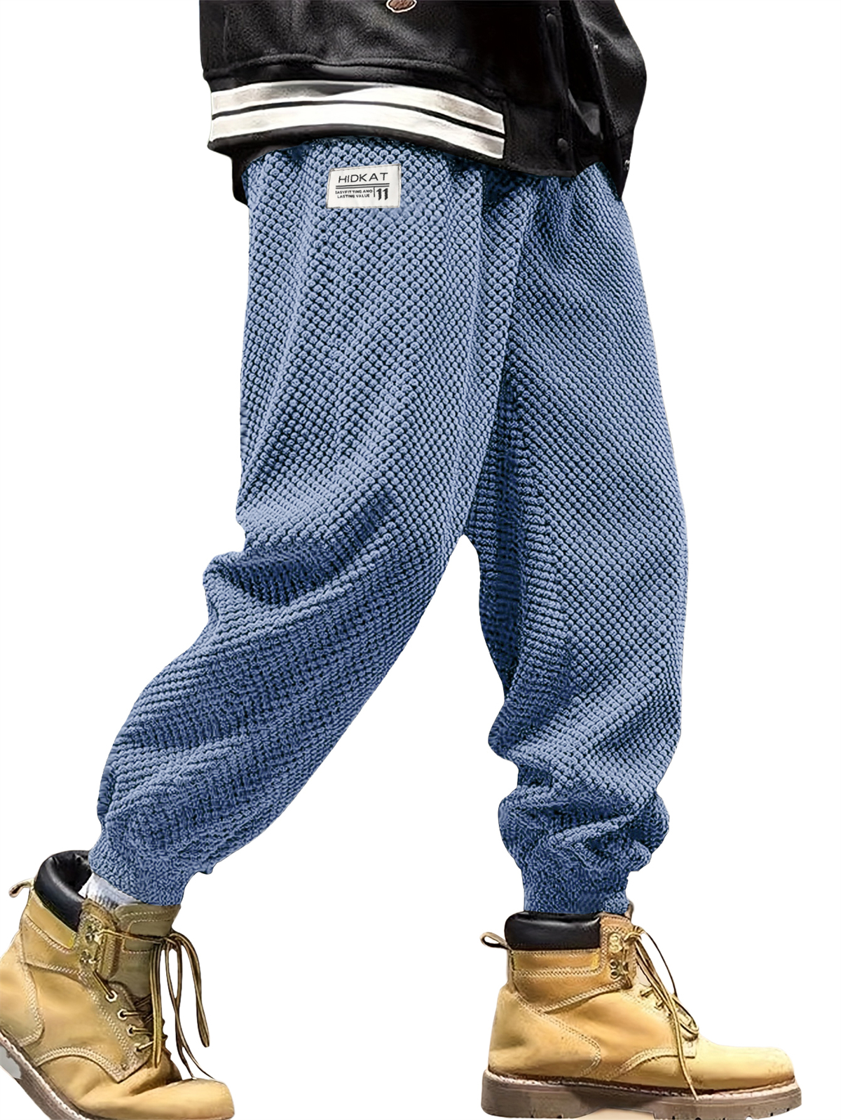 Men's Waffle-knit Casual Loose-fitting Trousers With Embroidered Logo
