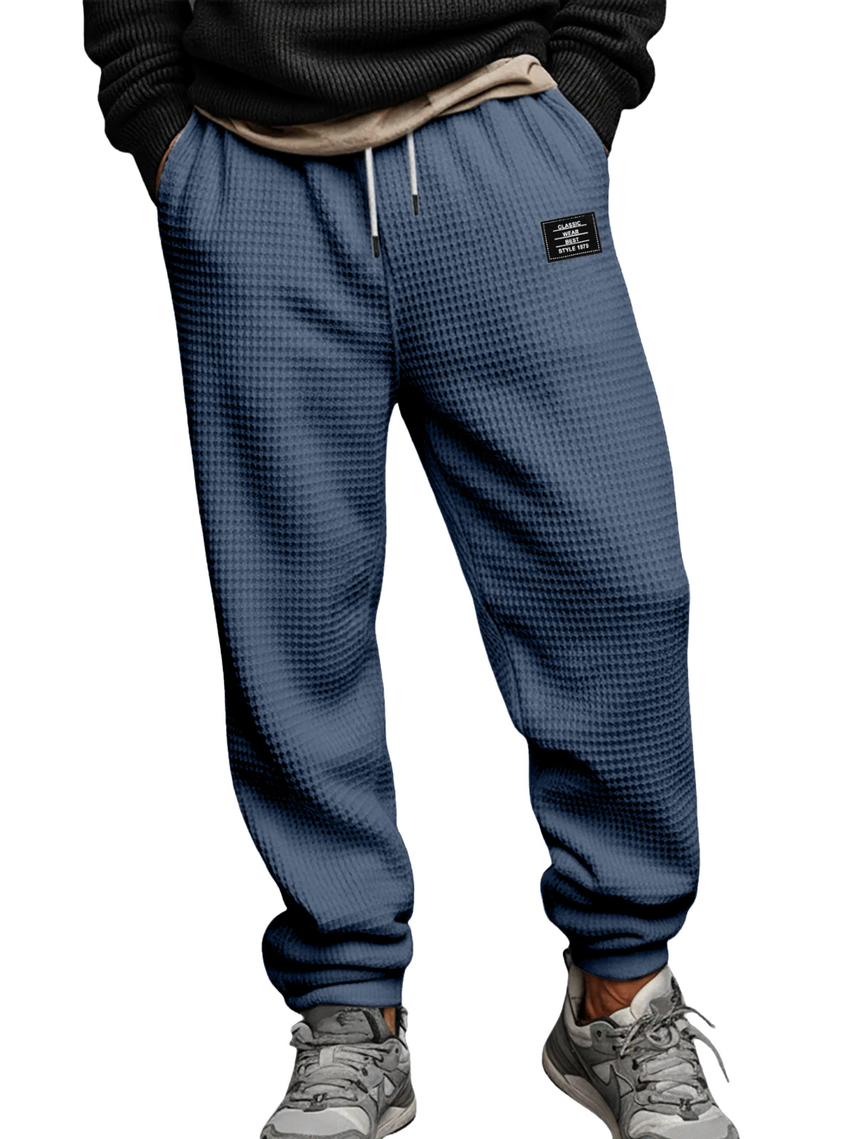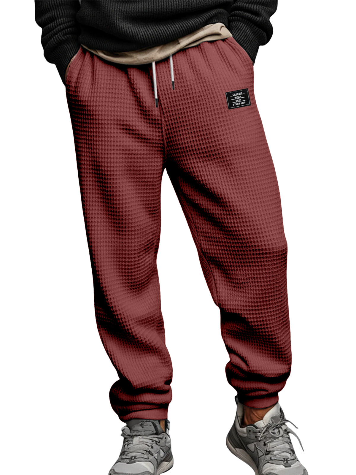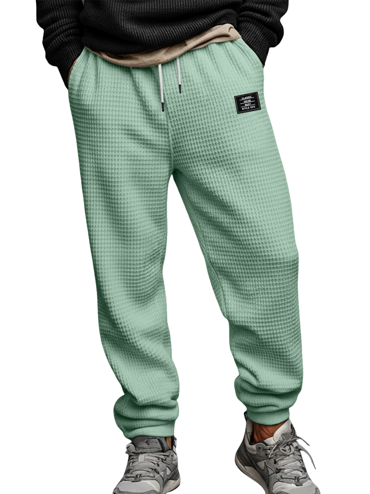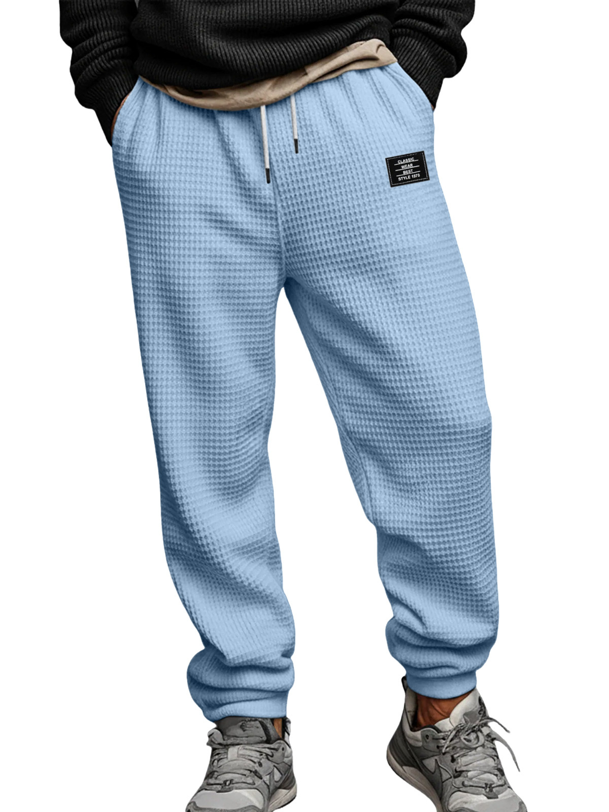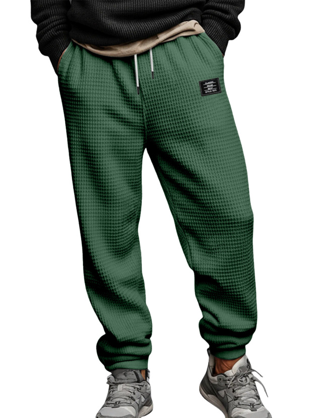 Men's Simple Waffle Texture Drawstring Embroidered Label Pants