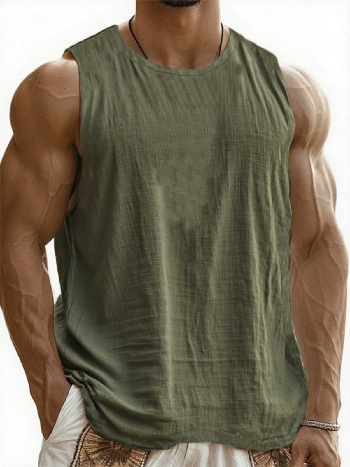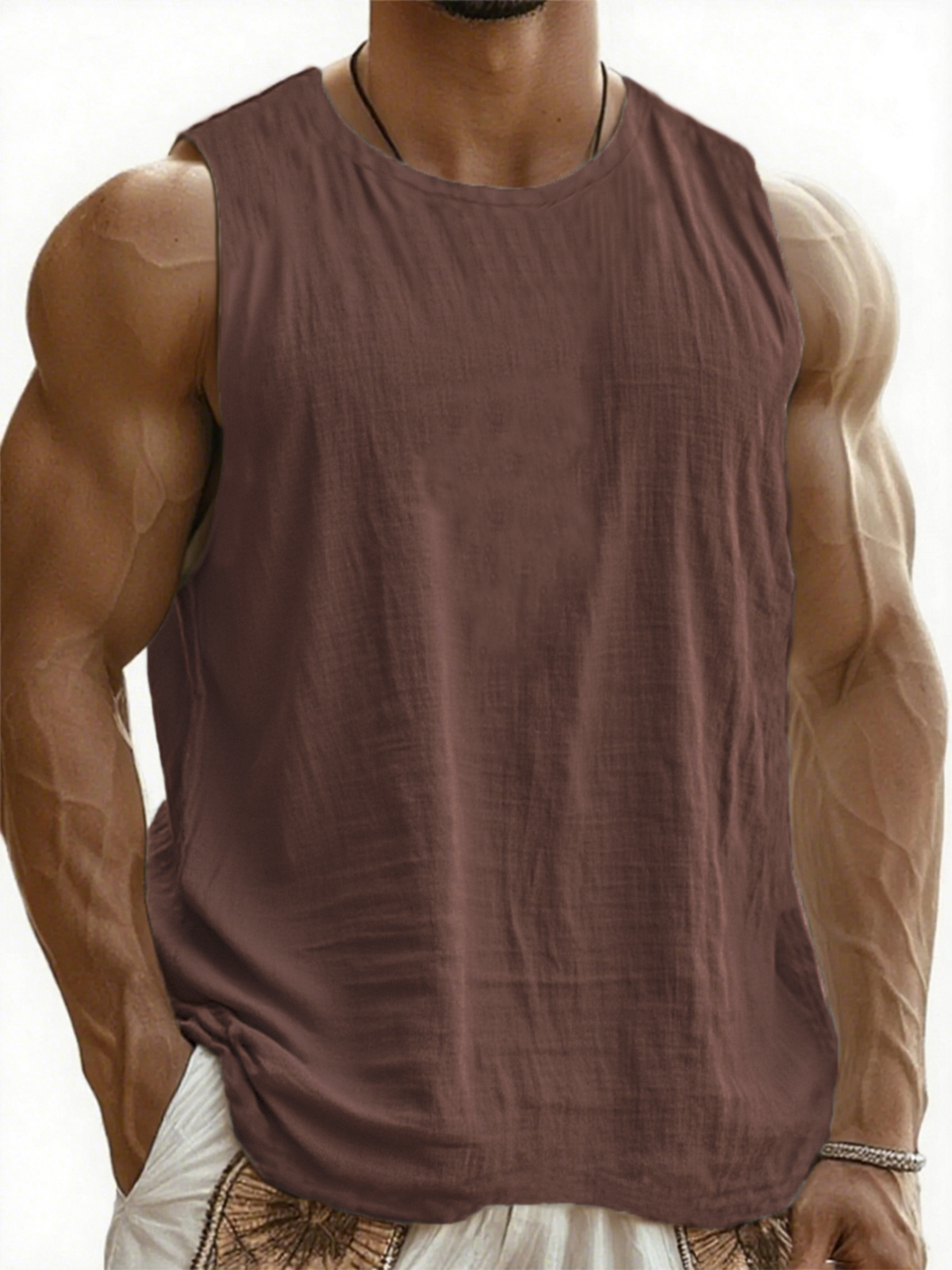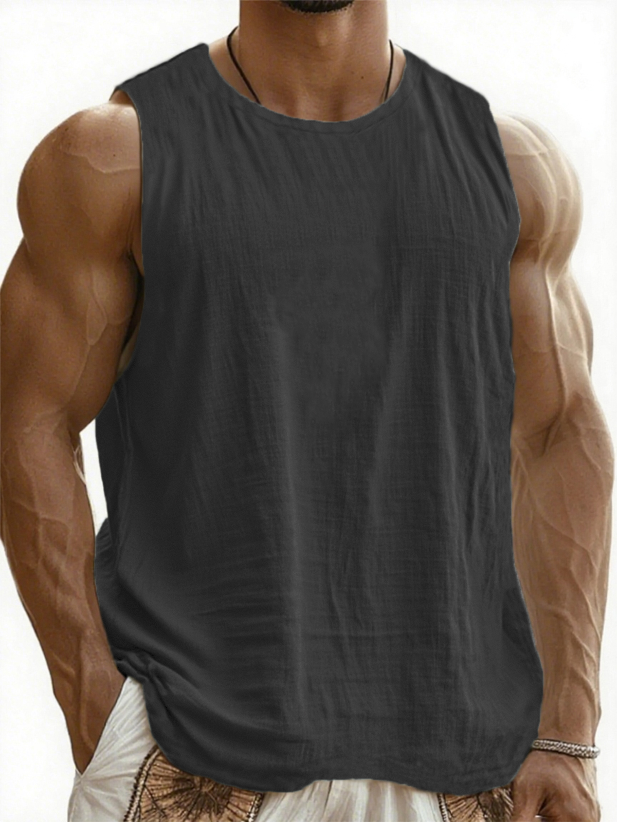 Atmungsaktive, ärmellose, plissierte Herren-Urlaubsweste aus Leinen