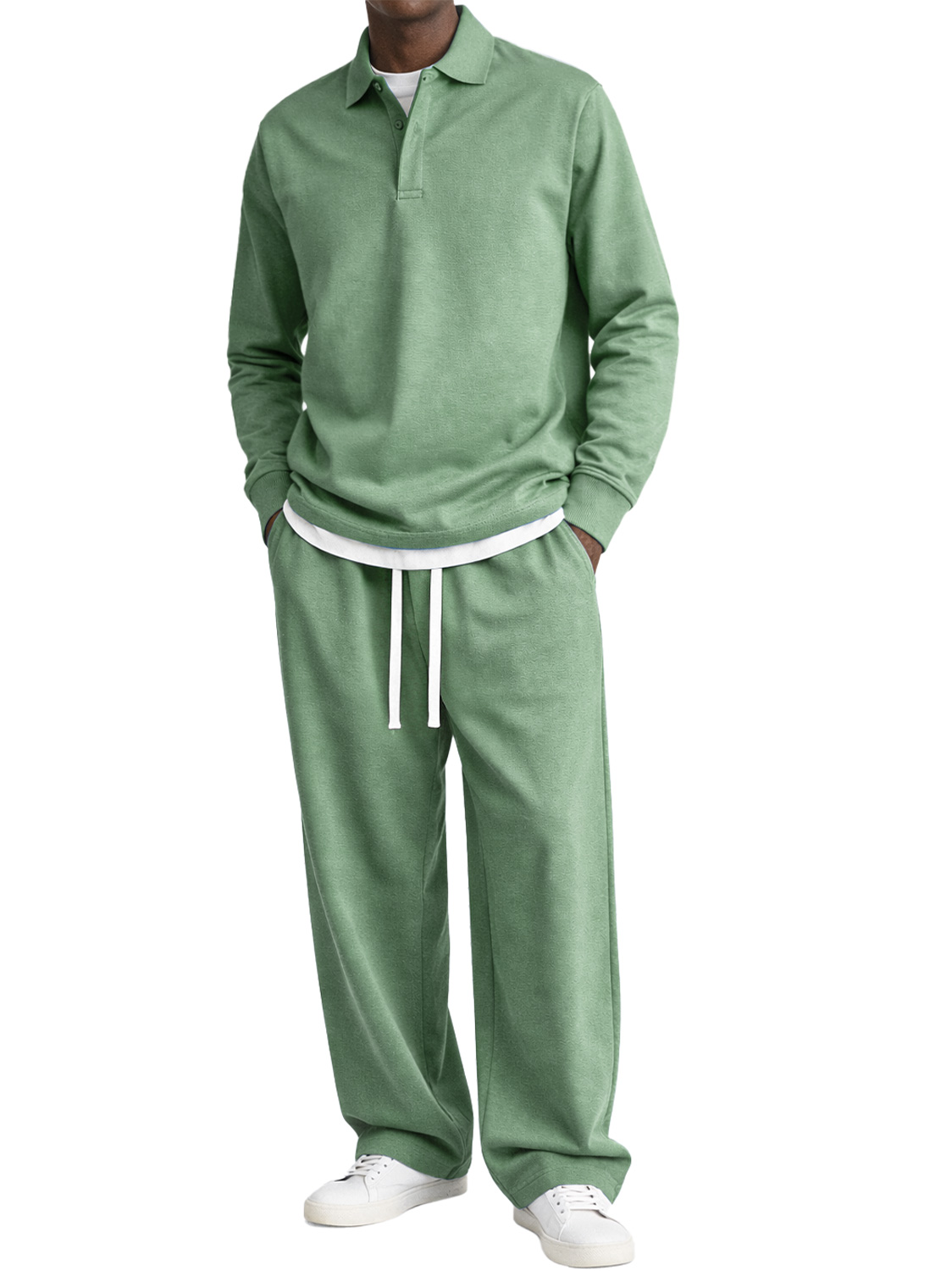 Bequemes Herren-Poloshirt und passende Hose zweiteilig mit verdeckter Knopfleiste