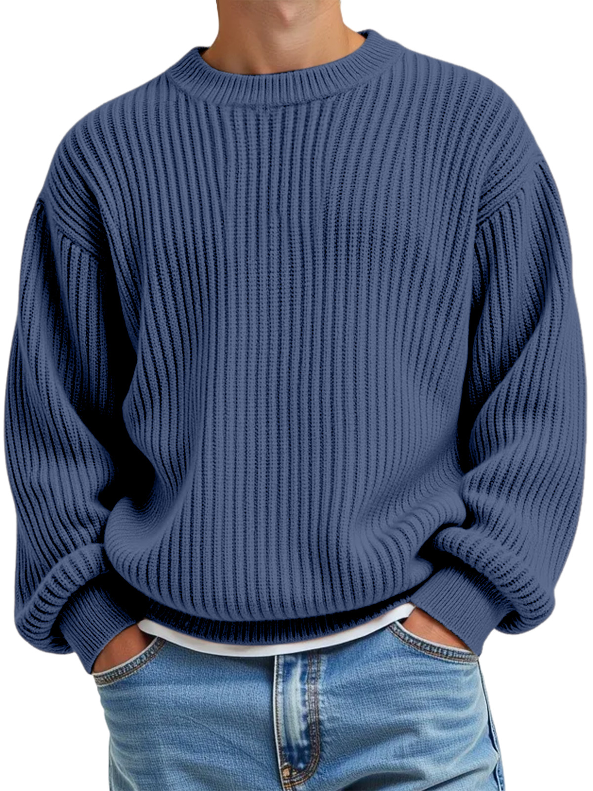 Einfarbiger Strickpullover mit Rundhalsausschnitt für den täglichen Gebrauch für Herren