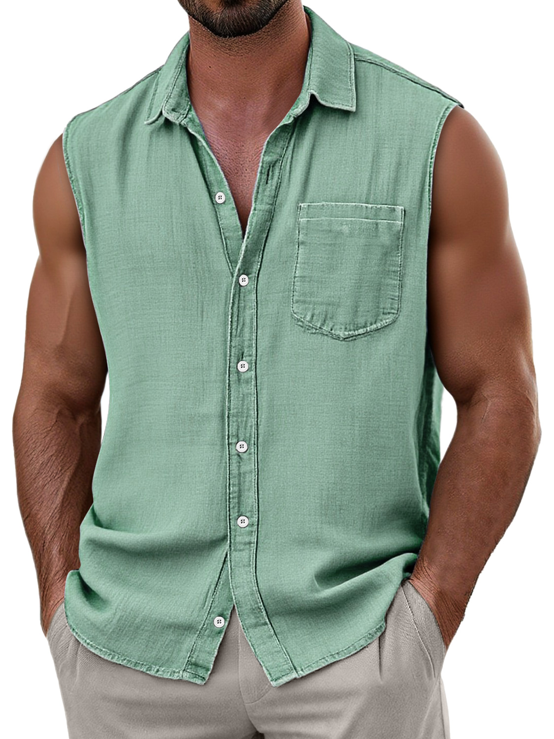 Herrenhemd aus Leinenimitat mit lässiger Tasche, bequem, ärmellos