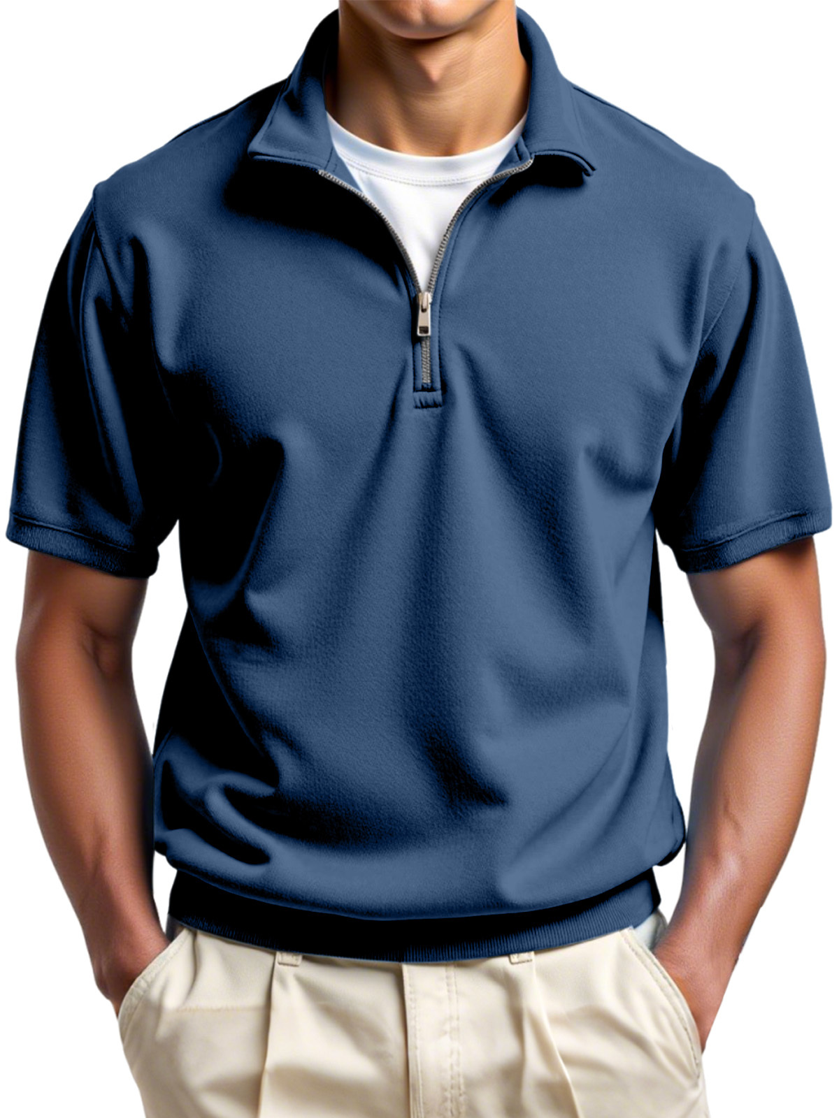 Einfaches, einfarbiges Poloshirt mit Reißverschluss für Herren