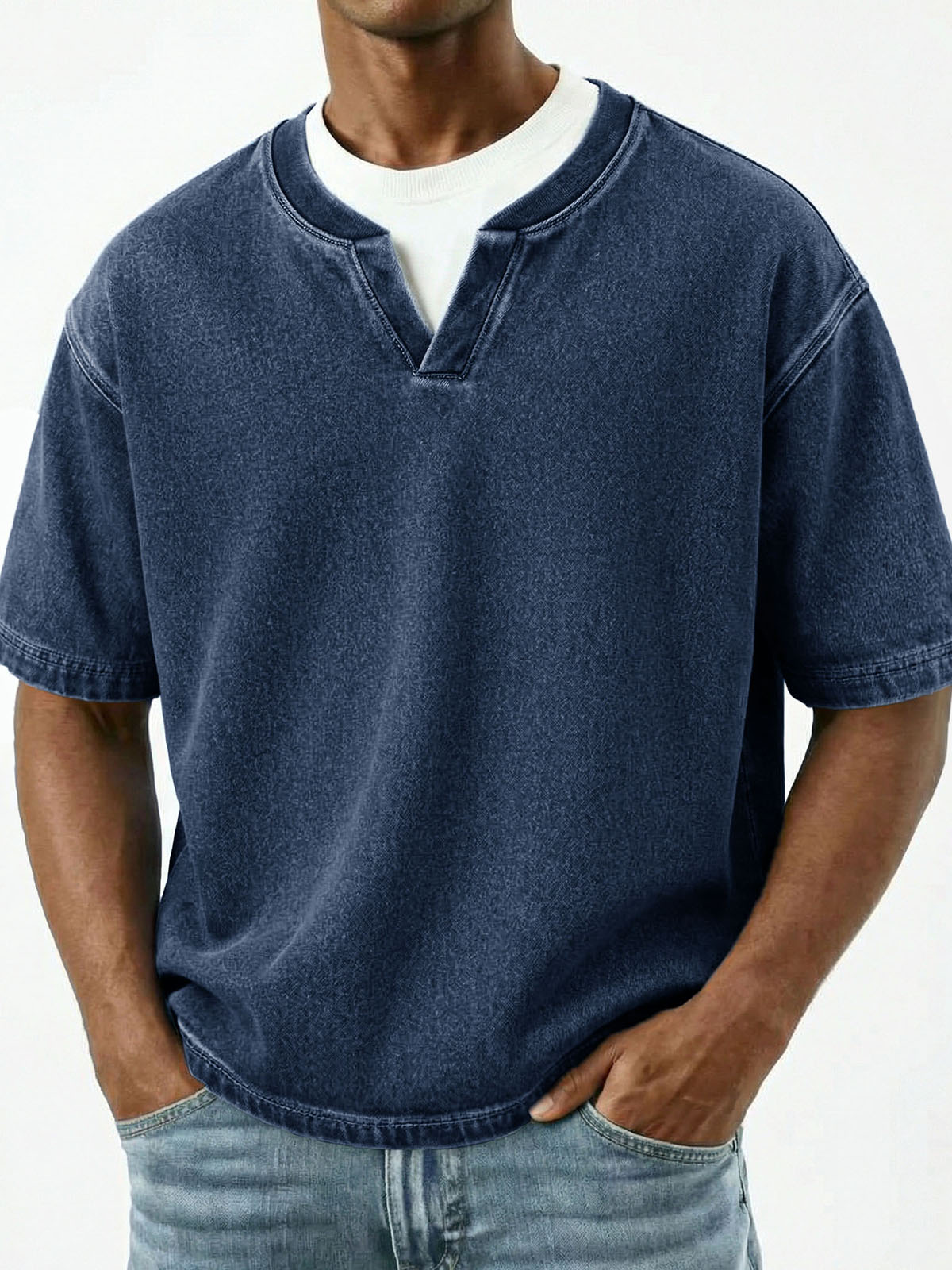 Retro-T-Shirt für Herren mit V-Ausschnitt und kurzen Ärmeln