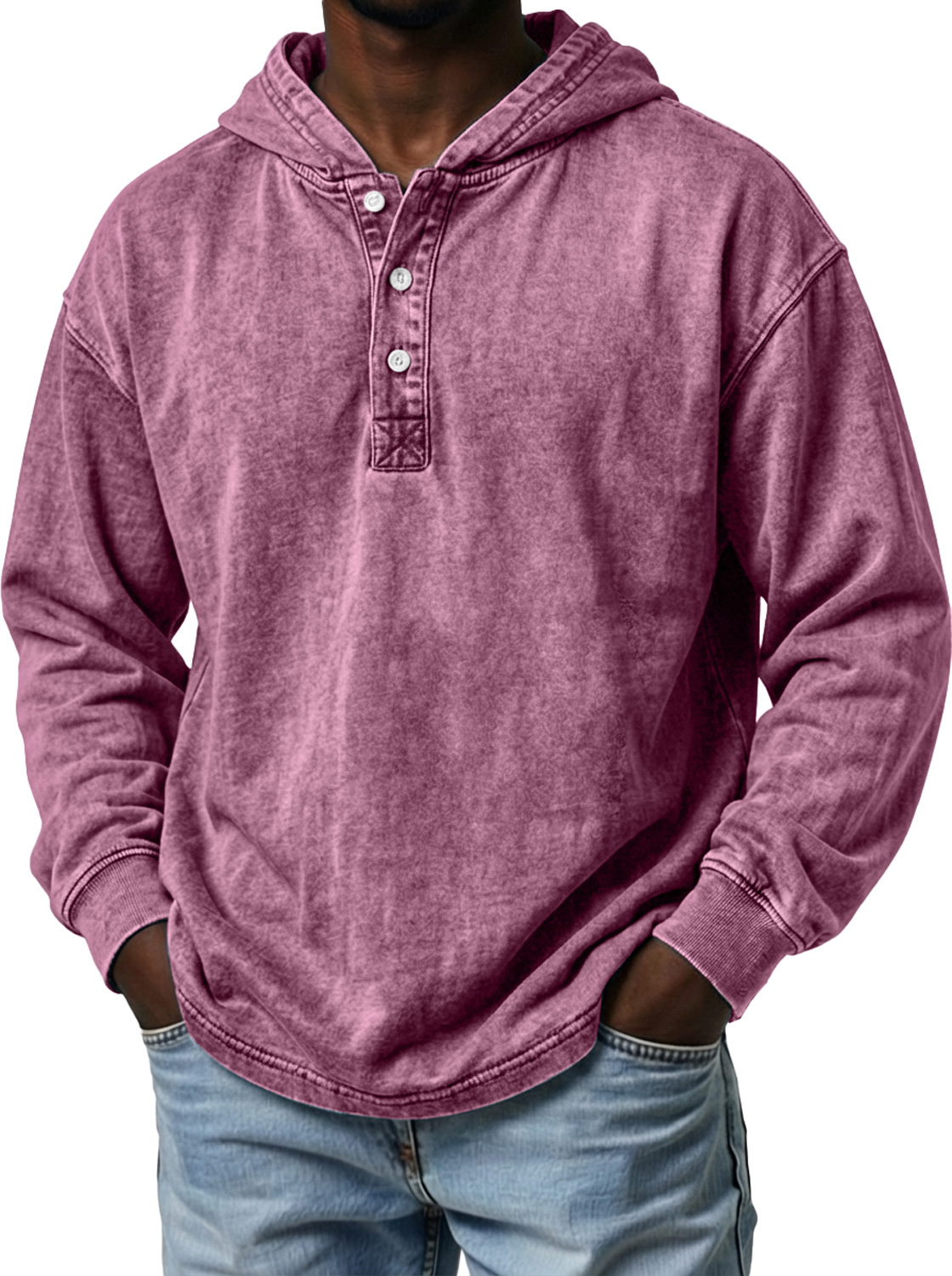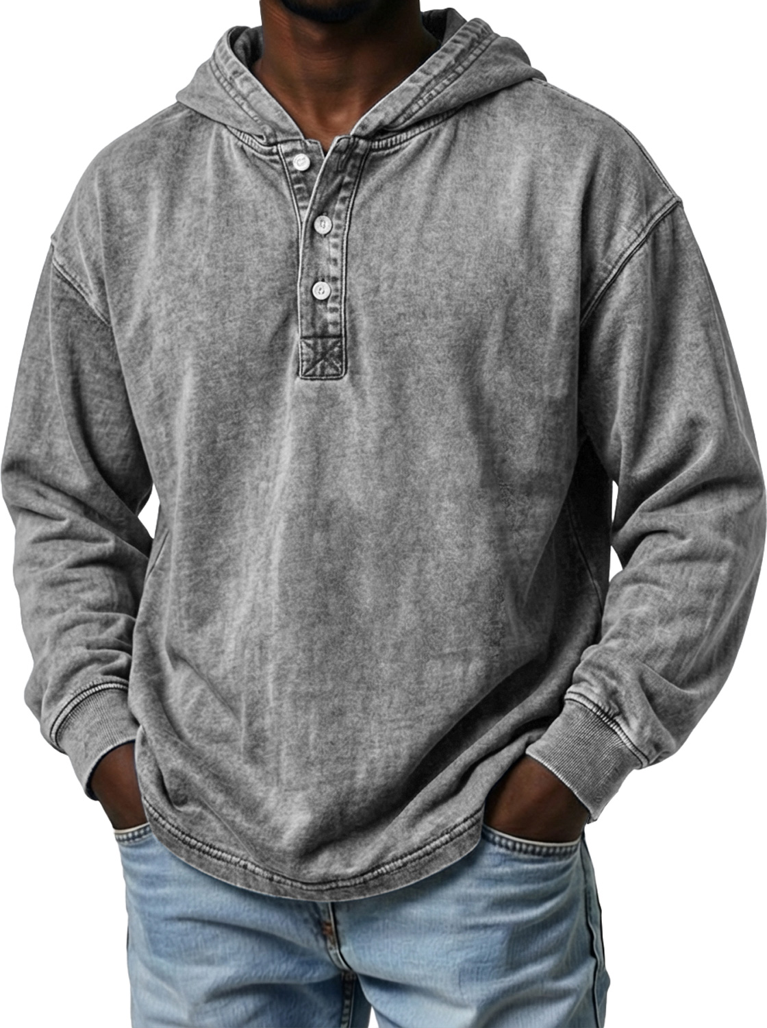 Vintage Herren-Freizeit-Langarm-Kapuzenpullover mit Knöpfen