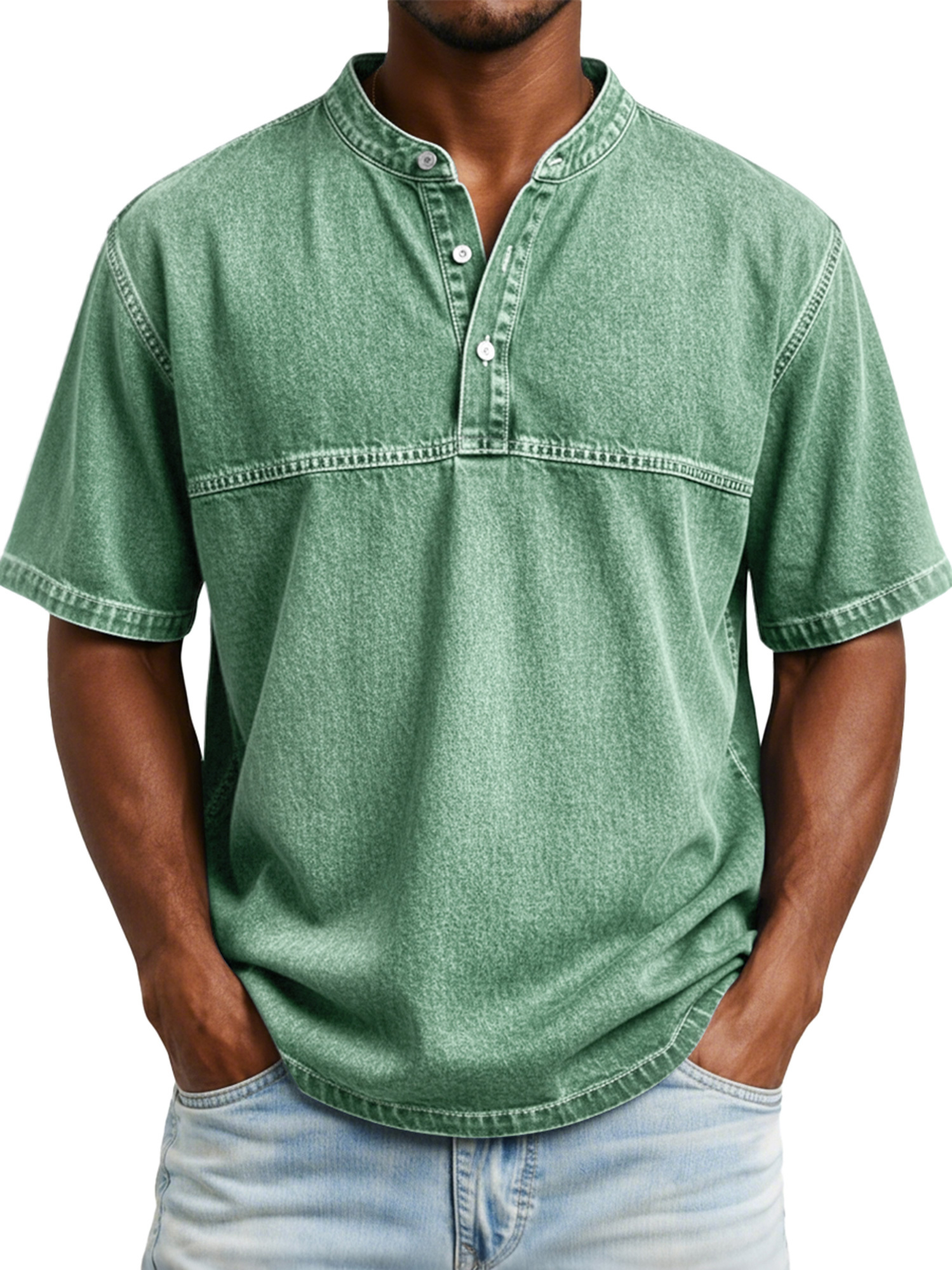 Herren-Henley-Shirt im Vintage-Stil mit kurzen Ärmeln und kontrastierenden Ziernähten