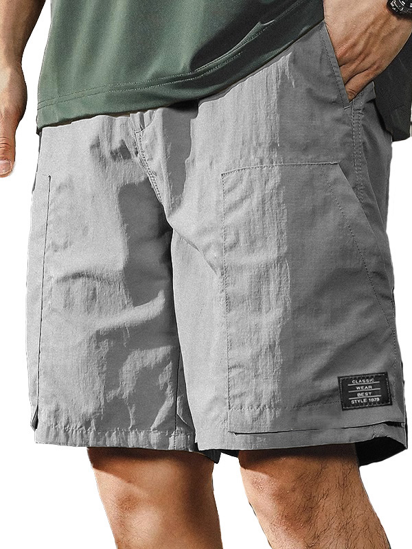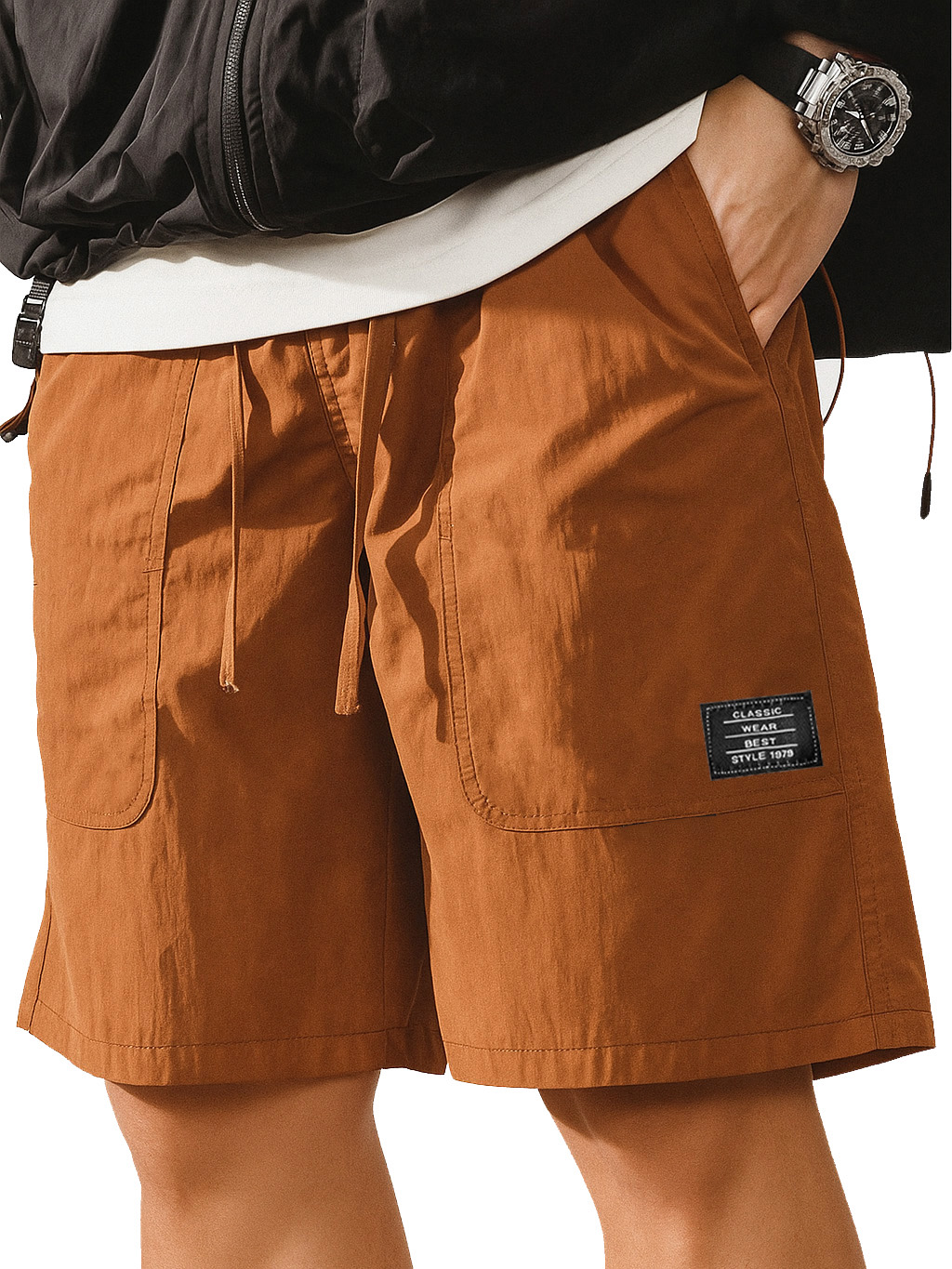 Men's Retro Solid Color Design Sense Logo Casual Shorts