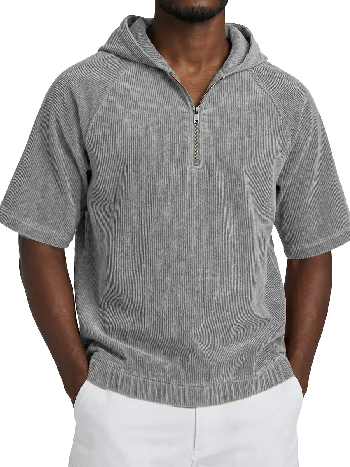 Men's Fashionable Casual Retro Hooded Short-Sleeve Zipper T-Shirt
