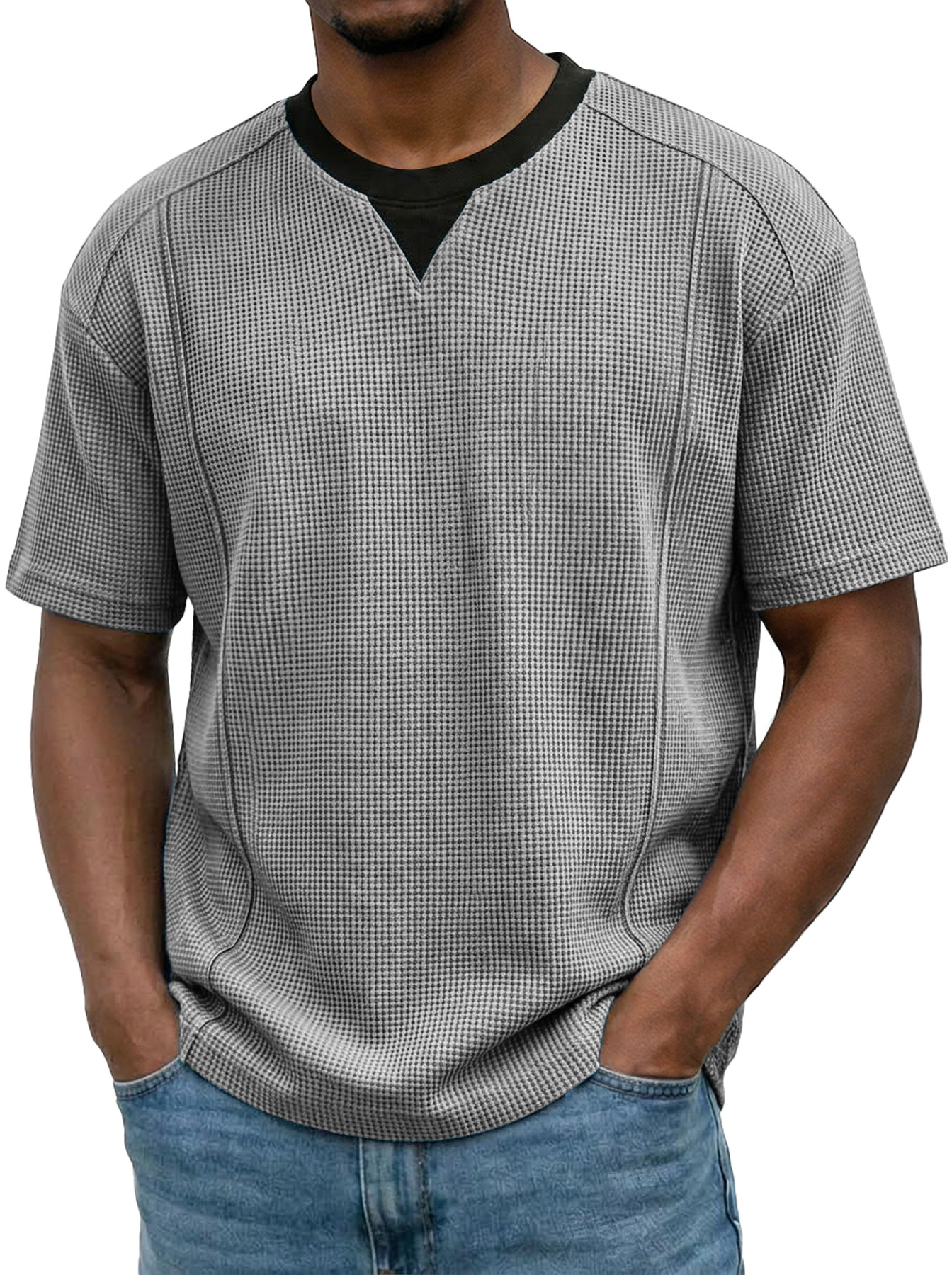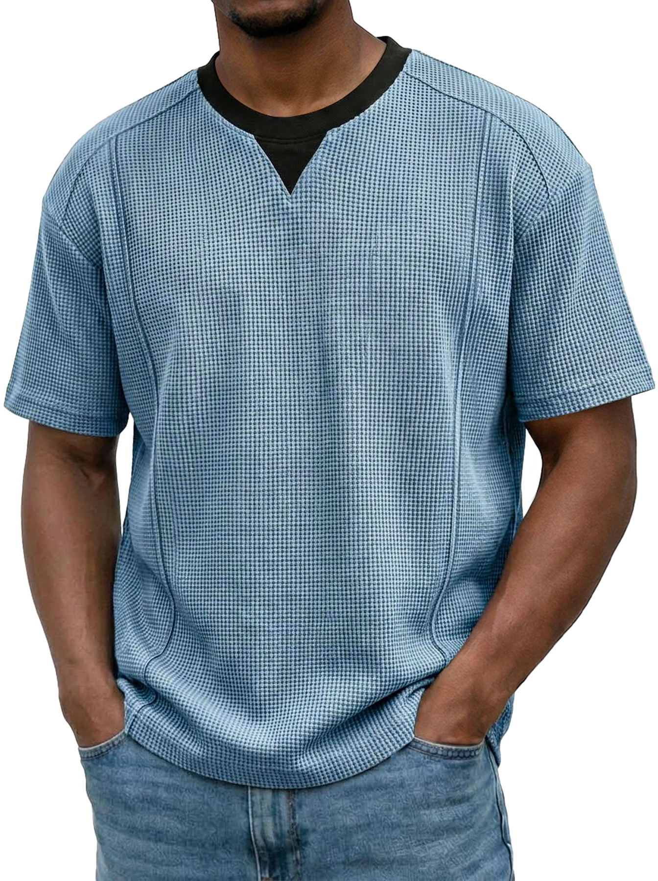 Herren Waffel-Farbblock-T-Shirt im dekonstruierten lässigen Kurzarm-Look