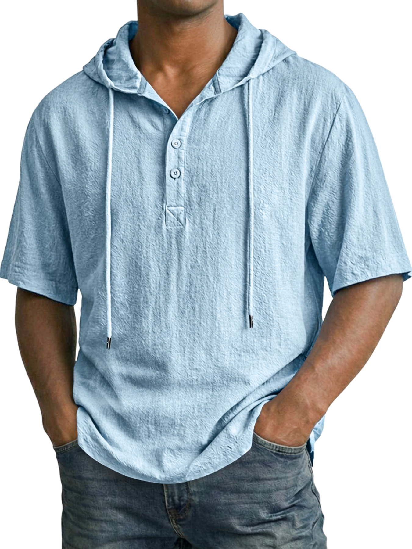 Lässiges und bequemes Herren-Kapuzenoberteil aus Baumwolle und Leinen mit Knopfleiste
